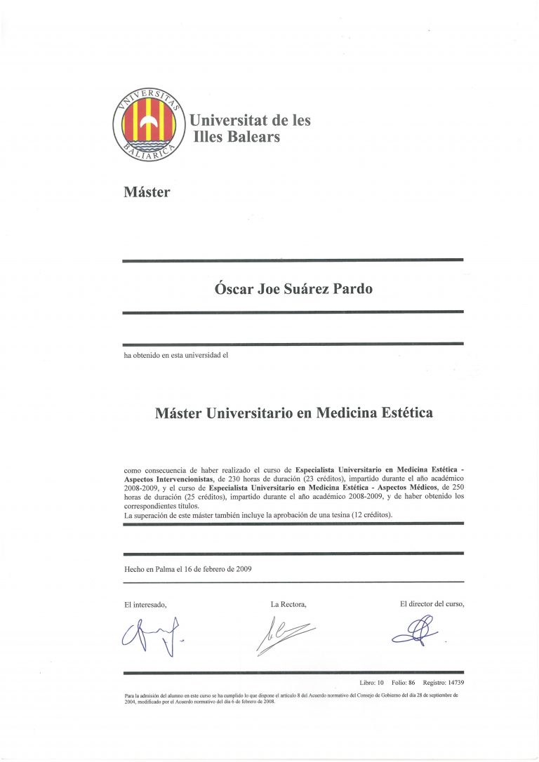 El Dr. Oscar Suárez, Licenciado en Medicina con Master Universitario en Medicina Estética por la Universitat de les Illes Balears, ostenta una destacada carrera de más de 19 años en medicina estética, con formación tanto en Europa como en EE.UU.