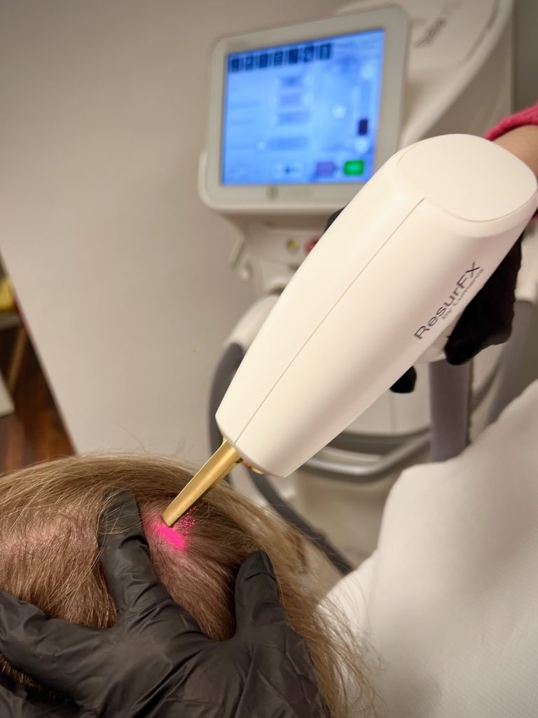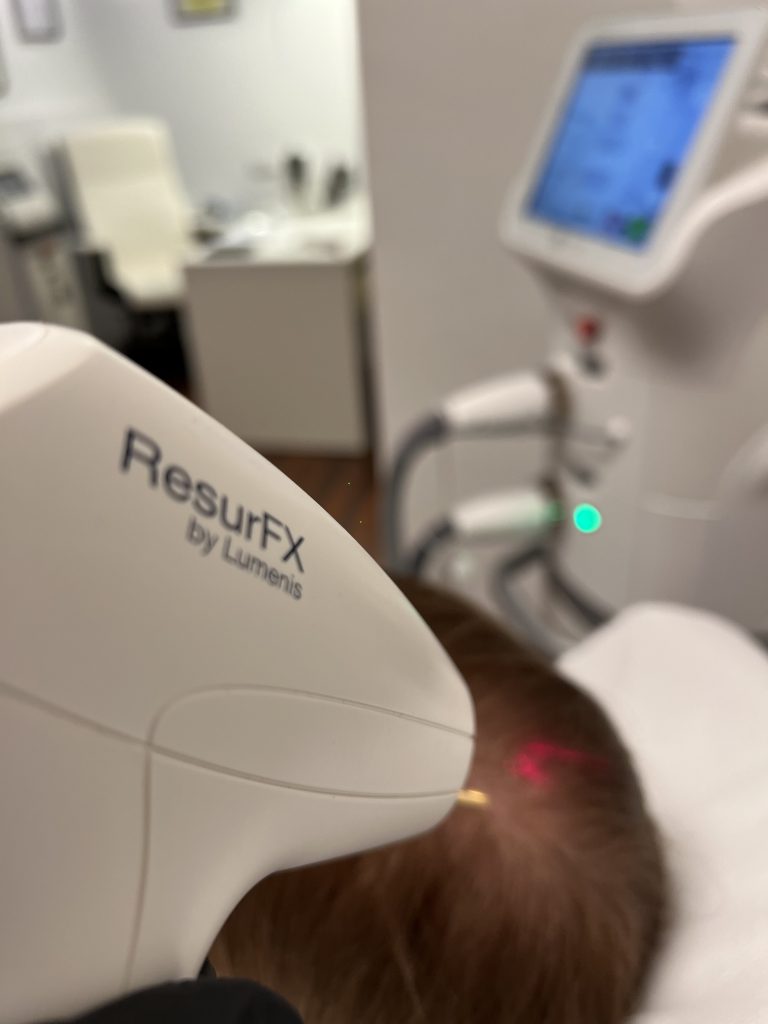 El ResurFX es un láser de la plataforma Stellar M22 de Lumenis que posee un modo exclusivo para tratamiento capilar, ResurHair. Lo utilizo para dar una gran estimulación a las células madres del folículo piloso.